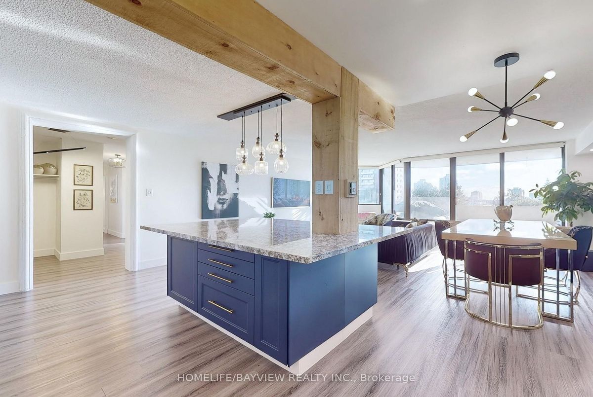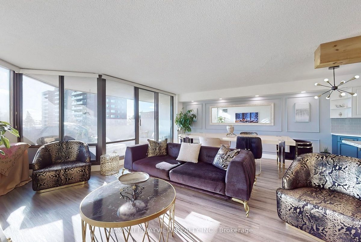 Step into comfort and convenience with this spacious and beautifully updated 2-bedroom, 2-bathroom almost 1400sqft south facing unobstructed sun exposure condo in one of Richmond Hill's most sought-after communities. This suite offers a functional layout and boasts a large private balcony overlooking serene, landscaped gardens, your perfect escape after a long day. Whether you're a young professional, downsizer, or first-time buyer, this home offers the perfect blend of style and practicality. Entertainers delight with this amazing renovated kitchen with an enormous granite center island that has loads of extra storage. Center piece for guests. Newer Stainless steel appliances, quartz counters, pot drawers, sliders, garbage/recycle stations, etc. Really well designed open concept gourmet kitchen. Beautiful laminate flooring throughout. Spacious living area with walkout to large sunny balcony that allows Bbq. Newer toilets and vanities in the two full bathrooms. The in-suite laundry room provides ample storage space. Walk-in closet and ensuite in large primary bedroom. Side by side two car parking. Storage locker. Access to Club 66 with its awesome outdoor pool, games room, gym and party room. Option to purchase electric charger station. All-inclusive maintenance fees cover all utilities, internet, and cable, delivering exceptional value and peace of mind. Additional amenities include a car wash bay, visitor parking, and expansive green spaces. Located just steps from Yonge Street and Hillcrest Mall, and only moments from the Richmond Hill Public Library, Wave Pool and top-tier medical facilities, including Mackenzie Health Richmond Hill Hospital. Enjoy seamless access to GO Transit, VIVA, Highways 7 & 407, and an exciting array of cafes, restaurants, and boutique shops, all just minutes away.